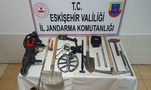 Eskişehir İl Jandarma Komutanlığı ekipleri izinsiz kazı yapan 2 şahsı suçüstü yakalarken, kazı yapmaya yarayan çok sayıda malzemeyi de ele geçirdi.