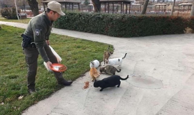 Kırşehir'de, Asayiş Şube Müdürlüğü bünyesinde hizmet veren HAYDİ ekipleri, sokak hayvanlarını mama vererek besledi.