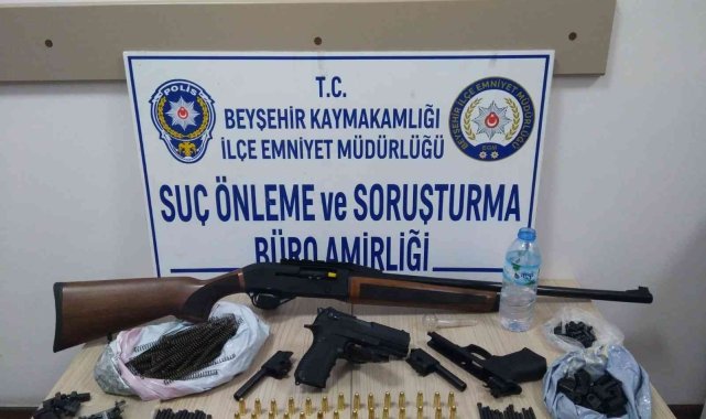 Edinilen bilgiye göre, Beyşehir İlçe Emniyet Müdürlüğü Suç Önleme ve Soruşturma Büro Amirliği ekipleri, Müftü Mahallesi'nde kanal kenarında devriye görevi ifa ettiği sırada durumundan şüphelendiği içerisinde 2 kişi bulunan bir otomobili durdurdu. Araçta yapılan kontrolde 1 adet ruhsatsız 9 milimetre çapında tabanca ve şarjörü ile 6 mermi ele geçirilen ekipler, şahısların ikametlerinde de arama gerçekleştirdi. Adreslerde yapılan aramada, 36 adet 9 milimetre çapında tabanca mermisi, 1 adet tabanca şarjörü, 2 adet tabanca namlusu ve atım yatağı, 1 adet ruhsatsız av tüfeği, 201 adet tabanca parçası ile 2 adet uyuşturucu kullanma aparatı ele geçirildi. Olayla ilgili olarak polis ekipleri tarafından gözaltına alınan Ö.T. ve O.Y. Emniyet Müdürlüğü'ndeki işlemlerinin tamamlanmasının ardından 6136 sayılı ateşli silahlar kanununa muhalefet etmek ve uyuşturucu kullanma ve bulundurmak suçlamalarıyla Beyşehir Adliyesi'ne sevk edildi. İki şüpheli, savcılıktaki sorgulamasının ardından sevk edildiği nöbetçi Sulh Ceza Hakimliğince adli kontrol şartıyla serbest bırakıldı.