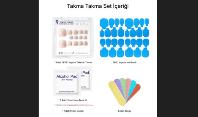 Tıpkı ellerimiz gibi, ayaklarımız da kişisel bakım rutinimizin ve özgüvenimizin önemli bir parçasıdır. Özellikle yaz aylarında, açık ayakkabılar ve sandaletlerle birlikte bakımlı ayak tırnakları çok daha önem kazanır. Ancak, manikür ve pedikür için ayırdığımız zaman ve bütçe düşünüldüğünde, sürekli olarak mükemmel görünümü korumak zor olabilir. İşte tam bu noktada, Takma Takma olarak devreye giriyor ve sizin için harika bir çözüm sunuyoruz: Ayak Takma Tırnak koleksiyonumuz.Bu özel koleksiyon, estetik kaygılarınıza en pratik ve etkili çözümü getiriyor. Ayak takma tırnaklarımız, hijyenik, tırnak dostu ve son derece konforlu bir kullanım sunar. Her biri el yapımı olarak özenle üretilen ürünlerimiz, tekrar tekrar kullanılabilir yapılarıyla hem sürdürülebilir bir seçenek hem de bütçenize dost bir çözümdür. Yazlık, parlak renklerden, minimalist ve zarif desenlere kadar geniş bir yelpazede sunulan tasarımlarımız, her tarza ve her özel anınıza kolayca uyum sağlar. Plajda, havuz başında, bir düğünde ya da günlük hayatınızın içinde, ayaklarınızın her an bakımlı ve şık görünmesini sağlarlar. Zamandan ve emekten tasarruf ederken, aynı zamanda tırnaklarınızın doğal halinin korunmasına da yardımcı olurlar.Biz Takma Takma olarak sadece bir marka değil, aynı zamanda bir hareketiz. Amacımız, bireylerin içlerindeki yaratıcılığı ve özgünlüğü özgürce ifade edebilmeleri için onlara ilham vermek ve güvenilir ürünlerle yanlarında olmaktır. Sürdürülebilir ve erişilebilir lüks anlayışımızla, herkesin kendini iyi ve özel hissetmesine aracı olmak en büyük motivasyonumuz. Çünkü inanıyoruz ki gerçek güzellik, kuralları değil, kendinizi sevmenin ve ifade etmenin cesaretini yansıtır. Bu yolculukta, sizinle birlikte yürümek ve güzelliğinizin sizin tanımladığınız şekilde parlamasına destek olmak için buradayız. Kendi tarzınızı keşfetmeye, denemeye ve cesurca sergilemeye hazır mısınız? Özgürlüğünüzü ve bireyselliğinizi Takma Takma farkıyla kutlayın. Daha fazla bilgi ve koleksiyonumuzu keşfetmek için web sitemizi ziyaret edin: https://www.takmatakma.com/