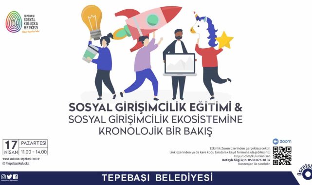Eskişehir Tepebaşı Belediyesi'nin kardeş şehri Treptow-Köpenick Belediyesi iş birliğinde hayata geçirdiği Tepebaşı Sosyal Kuluçka Merkezi, sosyal girişimciler için düzenlediği etkinliklere, "Sosyal Girişimcilik Eğitimi & Sosyal Girişimcilik Ekosistemine Kronolojik Bir Bakış" ile devam edecek.Tepebaşı Sosyal Kuluçka Merkezi gerçekleştirdiği eğitim ve etkinlikler ile sosyal girişimci adayı gençlerin ufkunu genişletmeyi sürdürüyor. "Sosyal Girişimcilik Eğitimi & Sosyal Girişimcilik Ekosistemine Kronolojik Bir Bakış" etkinliği de 17 Nisan Pazartesi günü 11.00-14.00 saatleri arasında zoom üzerinden katılımcılar ile buluşacak. Etkinliğe "tinyurl.com/kuluckanisan" linkinden ya da duyuru görselinde yer alan kare kod üzerinden kayıt yaptırılabilecek.