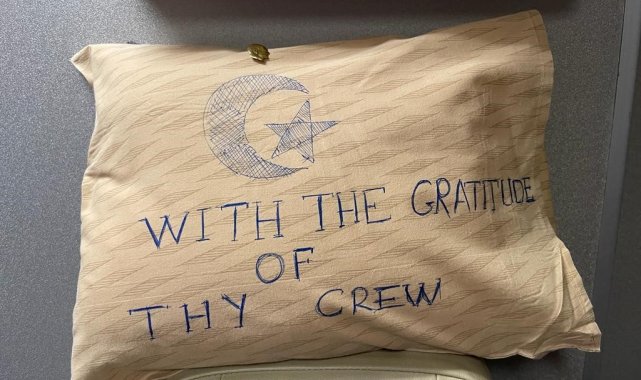 THY'nin TK1357 sefer sayılı İstanbul-Madrid uçağında, deprem bölgelerine yardım için gelen ve ülkelerine dönen İspanyol arama kurtarma ekibi de yer aldı. Uçaktaki kokpit ve kabin ekibi, teşekkür amacıyla yastığın bir yüzüne ay-yıldız çizip ''With the gratitude of Cabin Crew'' yazdı. Diğer yüzüne ise kabin ve kokpit ekibinin isimleri yazılıp bröveleri takılarak, İspanyol arama-kurtarma ekibine hediye edildi. İspanyol arama kurtarma görevlileri, kabin ekibinin jesti karşısında duygu dolu anlar yaşadı.