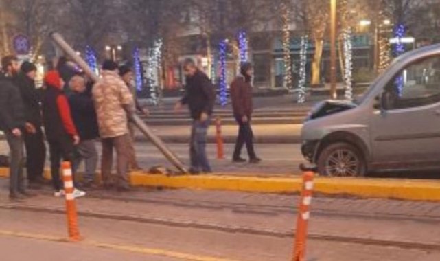 Eskişehir'de trafik kazası yapan hafif ticari araçta maddi hasar oluşurken, tramvay seferlerinde aksama meydana geldi.