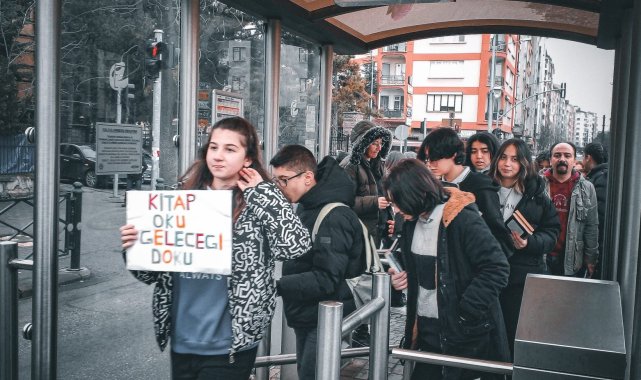 Eskişehir Gazi Mesleki ve Anadolu Lisesi öğrencileri tramvayda kitap okuma etkinliği gerçekleştirdi.