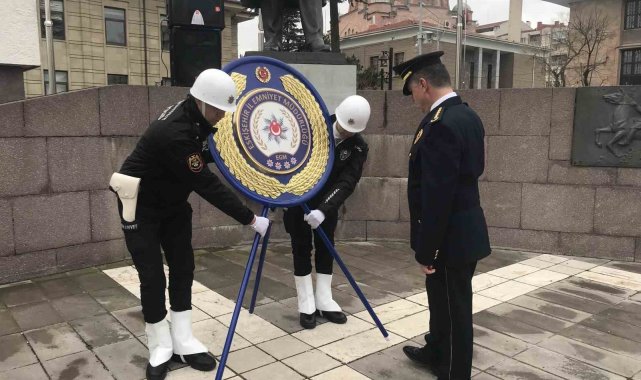 Eskişehir'de Türk Polis Teşkilatı'nın 178'inci kuruluş yıl dönümü resmi törenle kutlandı.Valilik Meydanı'nda gerçekleştirilen tören, İl Emniyet Müdürü Yaman Ağırlar ve Trafik Polis Eğitim Merkezi Müdürü Murat Günaydın tarafından Atatürk anıtına çelenk sunulmasıyla başladı. Saygı duruşu ve İstiklal Marşı'nın okunmasıyla devam eden tören, hatıra fotoğrafı çektirilmesinin ardından sonra erdi.