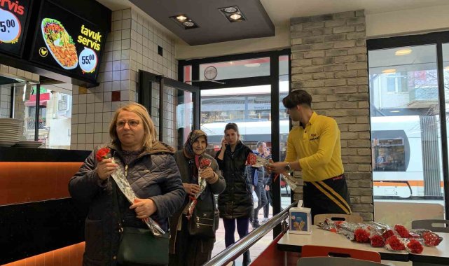 Eskişehir'de uzun yıllardır hizmet veren Donas Grup, 8 Mart Dünya Kadınlar Günü'nde kadınlara kırmızı karanfil sunarken, menülerinden ücret almadı.