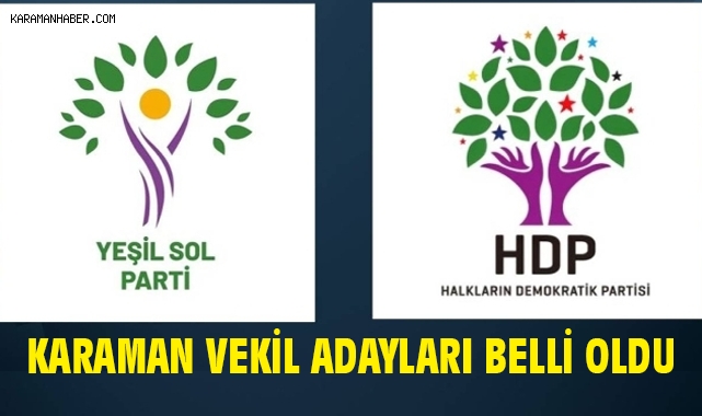 HDP, bileşeni olan Yeşil Sol Parti ile seçime girme kararı aldı. Yüksek seçim Kurulu'na giden heyet, listeyi sundu.Karaman'da ise Yeşil Sol Parti milletvekili adayları şu şekilde sıralandı;1- YILDIZ KILINÇ