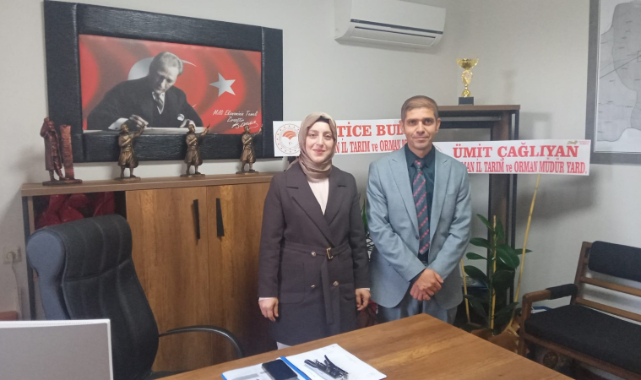 İl Tarım ve Orman Müdürü Hatice Bulut, göreve başlayan İlçe Müdürü Yılmaz Aslandağ’ı makamında Ziyaret ederek hayırlı olsun dileklerinde bulundu ve yeni görevinde başarılar diledi.