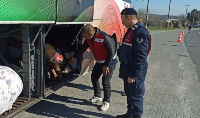 Aydın'ın Kuyucak ilçesinde jandarma tarafından yapılan yol kontrolünde bir otobüs firması ile seyahat eden yolculardan uyuşturucu madde ele geçirildi.